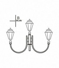 В отличие от консольных кронштейнов, рожки которых предполагают направление освещения вниз, световые приборы на торшерных кронштейнах направлены вертикально вверх. Угол разворота между рожками составляет 90°. Такой вариант востребован для комплектации декоративных опор. Для торшерных пятирожковых кронштейнов могут использоваться парковые светильники Пушкин-эконом, Пушкин-люкс, Шар, Прогресс.